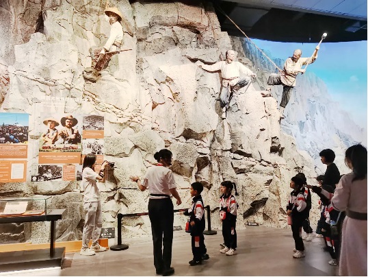 通過現(xiàn)代技術(shù)手段對華僑歷史的情景再現(xiàn)和豐富藏品的展覽,孩子們身臨其境地了解到先輩們在異國他鄉(xiāng)頑強(qiáng)拼搏,艱苦奮斗的故事,以及他們?yōu)樽鎳姆睒s富強(qiáng)所做出的貢獻(xiàn),孩子們紛紛為之驚嘆。特別是在講解員講到廣大華僑華人在我國抗日戰(zhàn)爭期間紛紛回國參戰(zhàn),為民族解放事業(yè)獻(xiàn)出寶貴生命的事跡時,孩子們更是為之動容。
