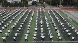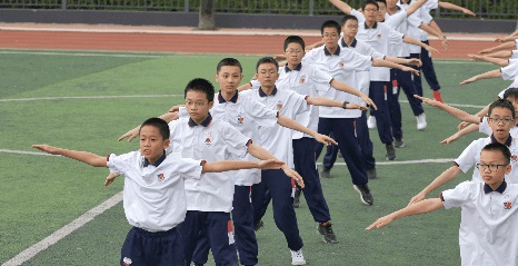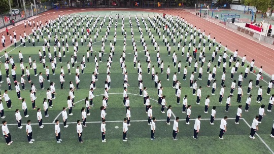 看!同學(xué)們動(dòng)作標(biāo)準(zhǔn)、有力、優(yōu)美,張弛有度,充盈著剛健之美;他們的舉手、抬腳、彎腰、轉(zhuǎn)身、跳躍整齊統(tǒng)一。大家全神貫注地投入比賽,盡可能地將每一個(gè)動(dòng)作做到完美。