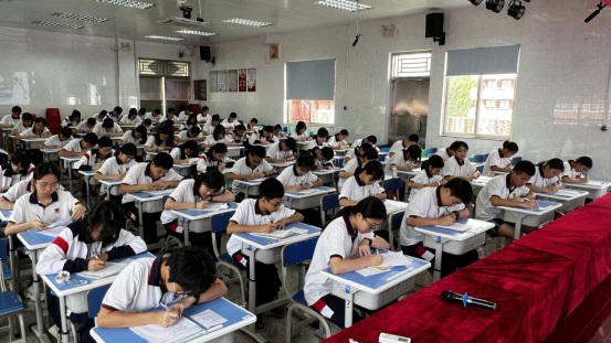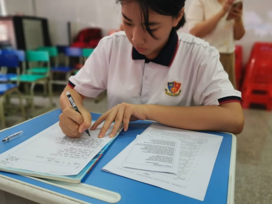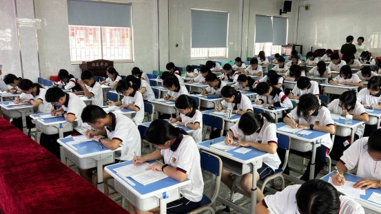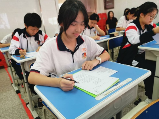 本次比賽要求:書寫卷面整潔美觀,字母、單詞、句子書寫規(guī)范、標(biāo)點符號、字間距等提出了具體的要求。比賽中,所有學(xué)生神情專注,他們用心執(zhí)筆,字母橫平豎直,圓潤飽滿,單詞間距勻稱,句子書寫規(guī)范、美觀。