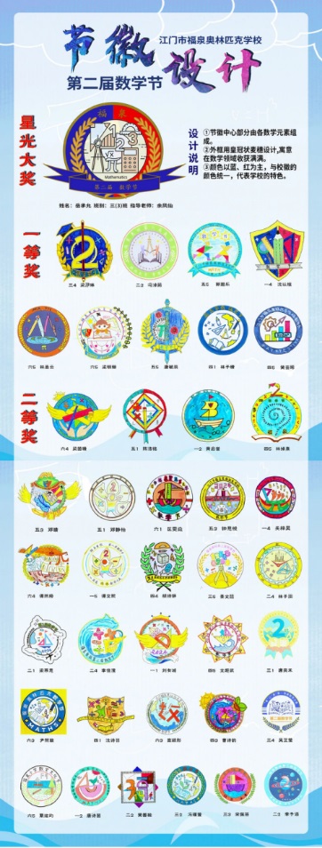 第二屆數(shù)學(xué)文化節(jié)設(shè)立了“節(jié)徽”設(shè)計(jì)比賽,吸引了眾多熱愛數(shù)學(xué)并擅長設(shè)計(jì)的同學(xué)參與。經(jīng)過美術(shù)組和數(shù)學(xué)組初選,再經(jīng)過學(xué)生全民投票,最終三3班岳承允同學(xué)以531票脫穎而出,其作品獲得了星光大獎(jiǎng)并成為節(jié)徽,其他優(yōu)秀作品也獲得一、二等獎(jiǎng)。