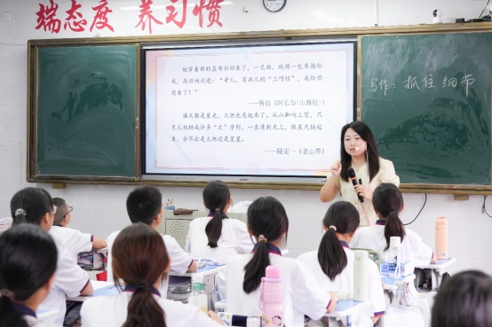 六月榴紅,教研熱情正濃。為進(jìn)一步提升學(xué)校辦學(xué)質(zhì)量,探索高效課堂模式,促進(jìn)校際溝通交流,6月4日,紫茶中學(xué)優(yōu)秀語文教師田丹應(yīng)邀來到我校開展送教活動,為七年級學(xué)生帶來了一堂精彩的《寫作:抓住細(xì)節(jié)》示范課,也為我校語文教師呈現(xiàn)了一場教學(xué)智慧的盛宴。