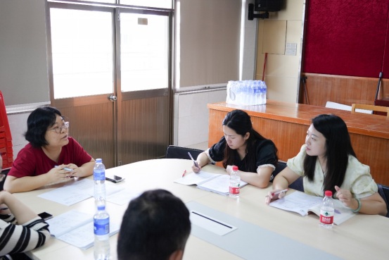 課后,全體教師齊聚四樓會議室展開研討。與會教師對本節(jié)課的創(chuàng)新價值與實踐意義給予高度評價,一致認(rèn)為田老師的課堂充分體現(xiàn)了過程化寫作教學(xué)的典范價值。她立足教材、突破教材,將抽象的寫作知識轉(zhuǎn)化為實用技能,讓學(xué)生真切感受到“寫作有法可依”。與會教師還與田丹老師深入交流,分享教學(xué)收獲,探討實踐中的困惑?,F(xiàn)場氛圍熱烈,智慧火花不斷碰撞。