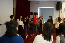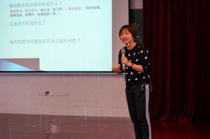 黃艷教授積極引導(dǎo)教師們探索新興教學(xué)模式,倡導(dǎo)“讓學(xué)習(xí)發(fā)生”的改革理念。講座分為兩部分,第一部分教授邀請老師們以學(xué)生的身份體驗(yàn)多個課堂戲劇教學(xué)游戲和活動。讓大家通過親身參與掌握如何利用戲劇教學(xué)引導(dǎo)學(xué)生學(xué)習(xí)不同類別的知識。