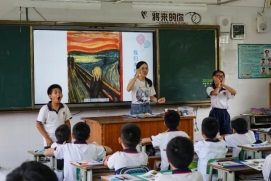 美術教研員譚晶志老師認為容惠玲老師的課堂通過創(chuàng)設猜成語游戲引出課題,再利用模仿世界名畫表情的游戲讓學生充分了解人物的表情與眼、眉、嘴的關系等教學設計很適合五年級學生的特點。