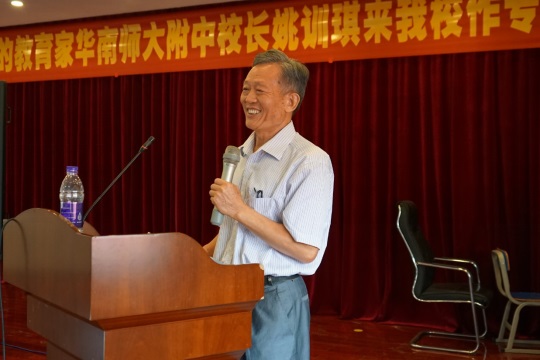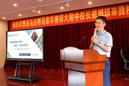 8月24日下午,華南師范大學(xué)附屬中學(xué)黨委書記兼校長(zhǎng)姚訓(xùn)琪應(yīng)邀來到福泉奧校,在四樓多功能廳作題為《共建華南師大附中“美德·學(xué)術(shù)共同體”》的專題報(bào)告。我校行政領(lǐng)導(dǎo)以及全體教師出席并聆聽了報(bào)告,報(bào)告會(huì)由鐘明洋副校長(zhǎng)主持。
