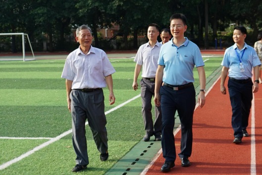 報(bào)告會(huì)結(jié)束后,姚訓(xùn)琪校長(zhǎng)在羅金宏校長(zhǎng)等學(xué)校行政領(lǐng)導(dǎo)陪同下參觀校園。